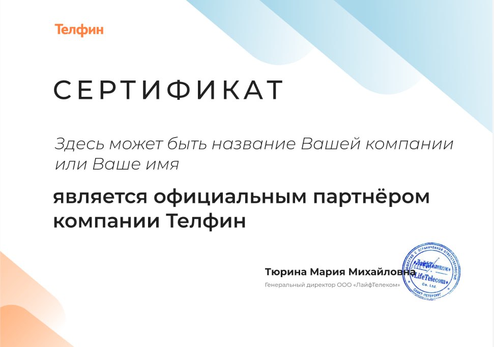 И мы зарегистрируем вас в Партнерской программе Телфин.