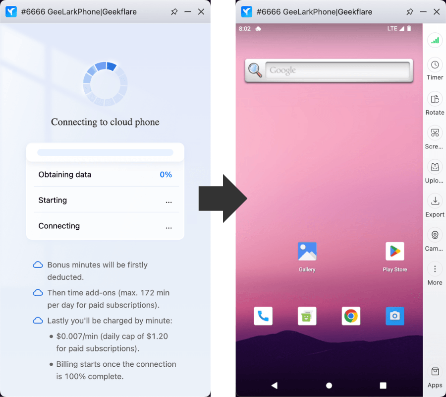 Запускай несколько приложений на удалённых телефонах — всё с одного дашборда на ПК. Забудь про физические телефоны. Облако — это быстрее и выгоднее.