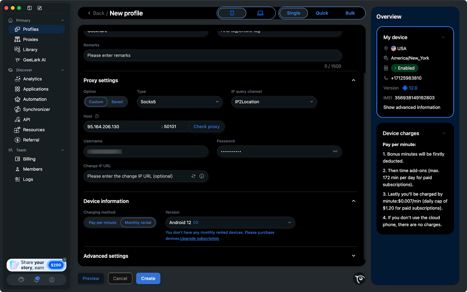 Используя такие удалённые Android-устройства, вы можете вести несколько аккаунтов в мобильных приложениях, действуя как реальный пользователь мобильного устройства.