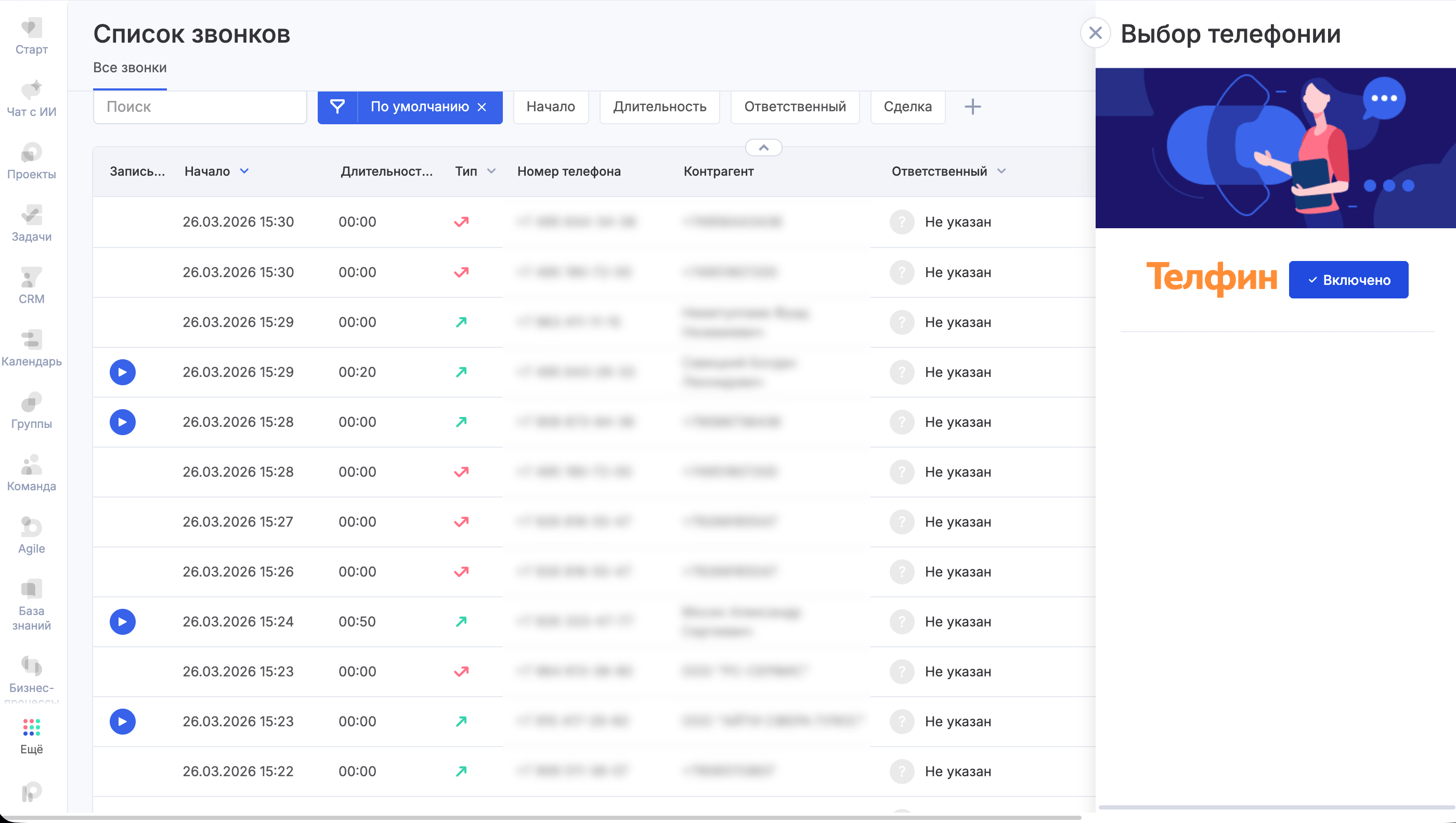 Звонки напрямую из системы Аспро.Cloud;