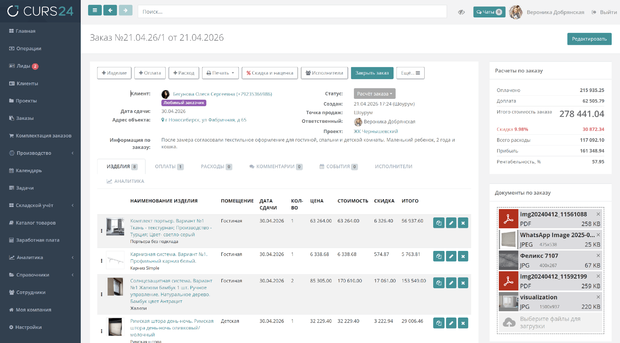 CURS24 — система для создания единого цифрового контура компании для эффективного управления бизнесом. Охват всех процессов: от расчета стоимости до контроля производства и начисления зарплаты сотрудникам.