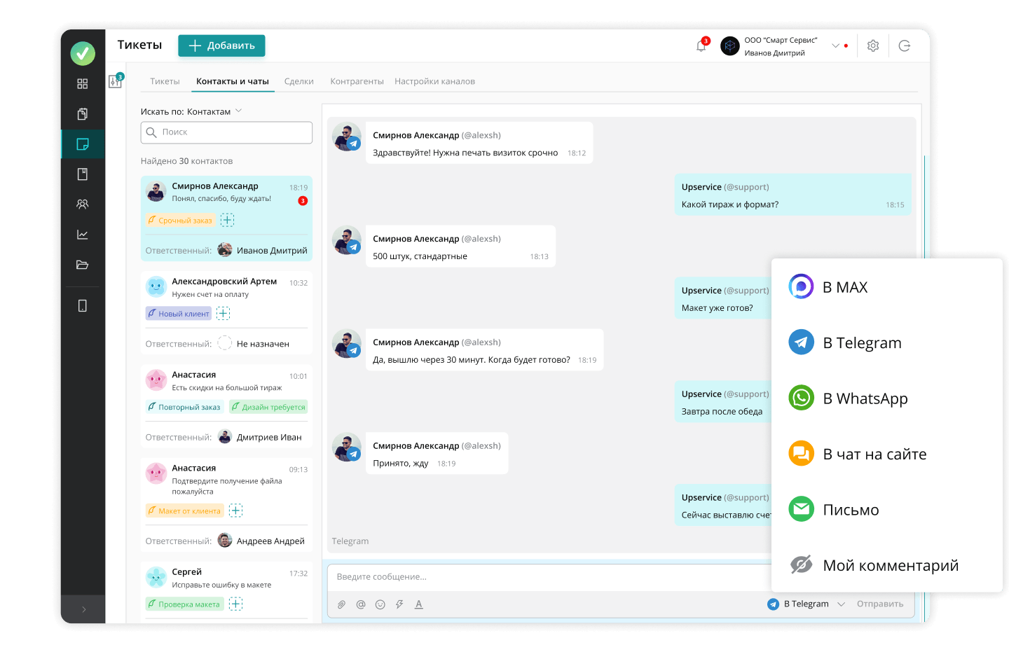 Тариф «Сервис деск» — от 1590 рублей за сотрудника в месяц (+ 2700 рублей подключение WhatsApp + MAX + номерной Telegram за номер)