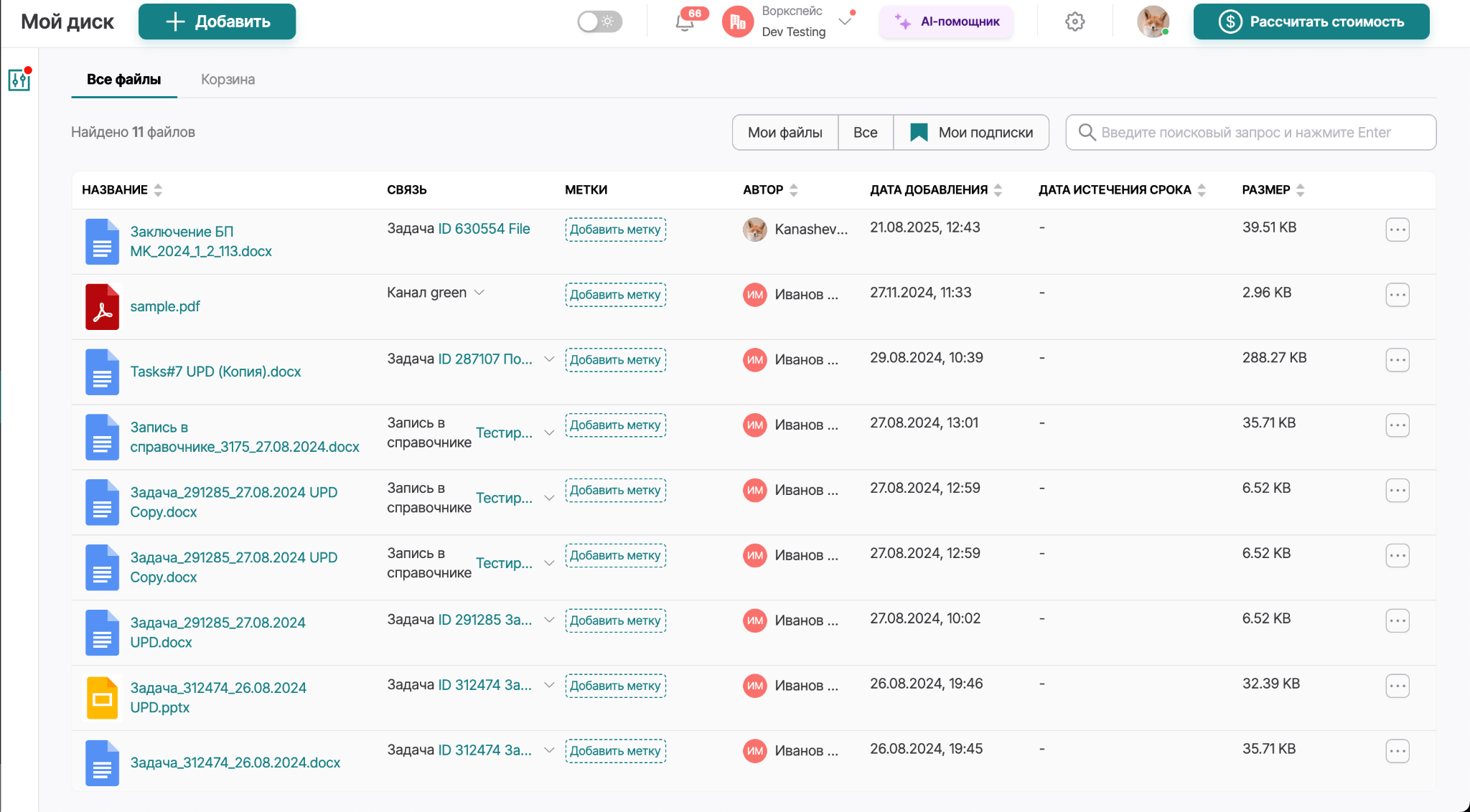 обмен документами между сотрудниками и подразделениями внутри компании через «Мой диск»