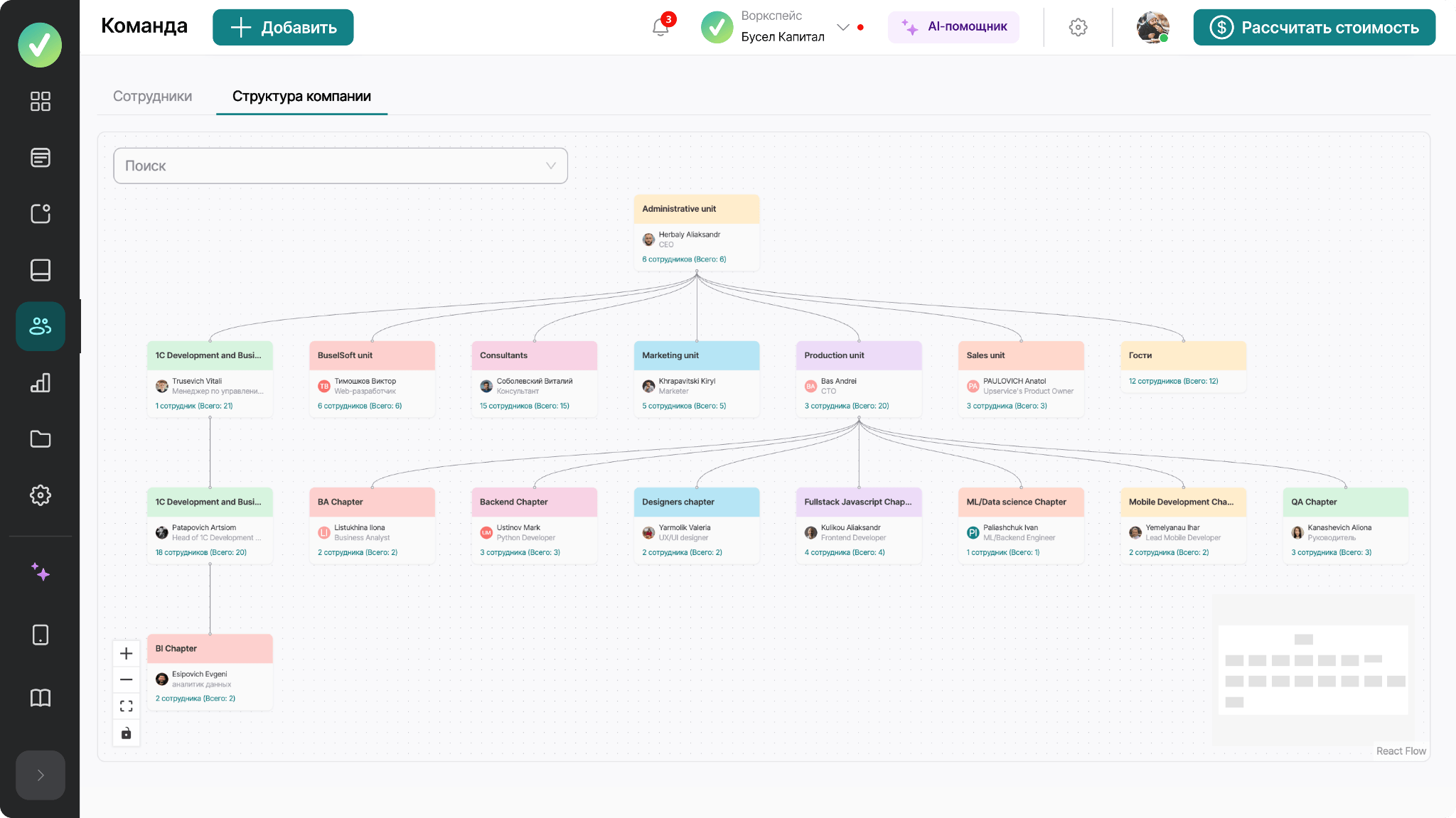 построение оргструктуры и прав доступа сотрудников в компании